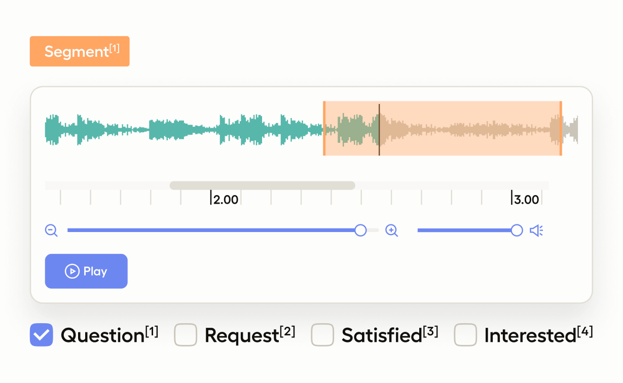 If you want to identify the intent of an audio recording, such as an interview or customer service call, use this template to classify intent by selecting choices and listening to an audio clip.